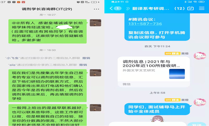 近日,为了更好指导本科生的考研工作,帮助更多学生实现考研梦,商务英语系与翻译系联合举办了考研系列分享会。鉴于学校尚未开学,分享会通过QQ、微信及腾讯会议方式进行,商务英语系主任毛艳文和翻译系主任黄橙轮流主持,2021年三位顺利录取硕士研究生的优秀校友及2018级部分学生参加。