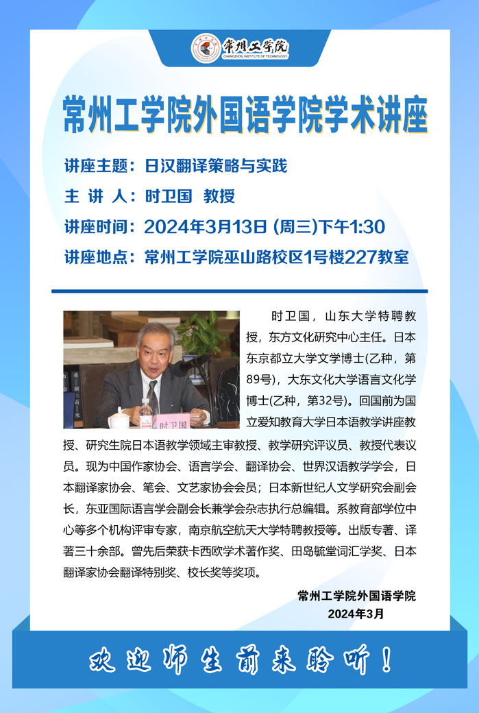 3月13日 | 学术讲座:日汉翻译策略与实践