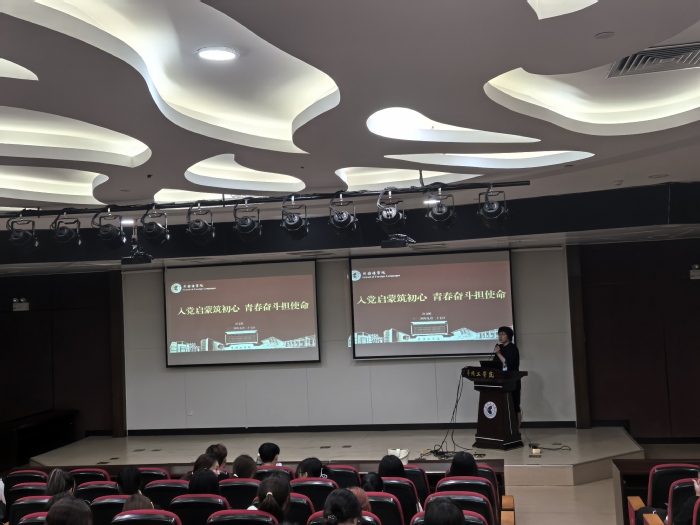 9月27日,开云kaiyun(中国)“思政第一课”在图书馆一楼报告厅举行,学院党委书记许文婷以“入党启蒙筑初心 青春奋斗担使命”为题主讲新生入学教育“思政第一课”。