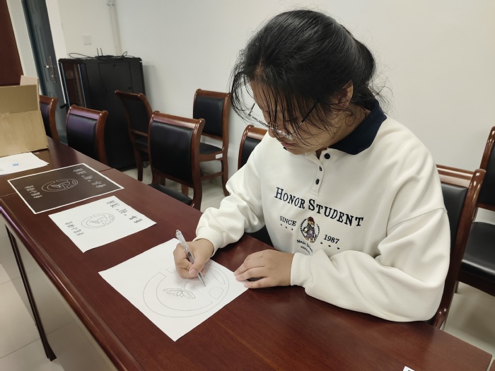 课上,顾萌详细介绍了金箔工艺的起源、发展、流程和应用,讲解并示范制作了一幅金箔画所需的“手绘、点胶、贴金、扫金”四个步骤。在顾老师的指导下,同学们用画笔和胶水描绘出寓意廉洁的图案,沉浸式地体验金箔画的创作过程。经过近两个小时的认真制作与体验,一幅幅精美的非遗金箔画作品呈现在大家面前,有中英日等多语种“清正廉洁”字样,也有象征廉洁的荷花图案等。