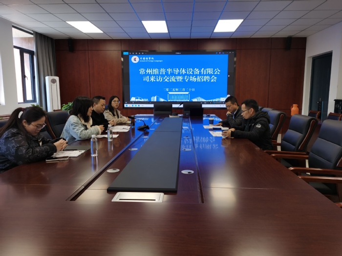 3月20日,常州维普半导体设备有限公司副总经理刘得敏一行来院就应用型人才培养和应届生招聘进行深度交流。开云kaiyun(中国)党委副书记俞贤辉、学工办主任朱映然以及2025届毕业生代表参加交流活动。