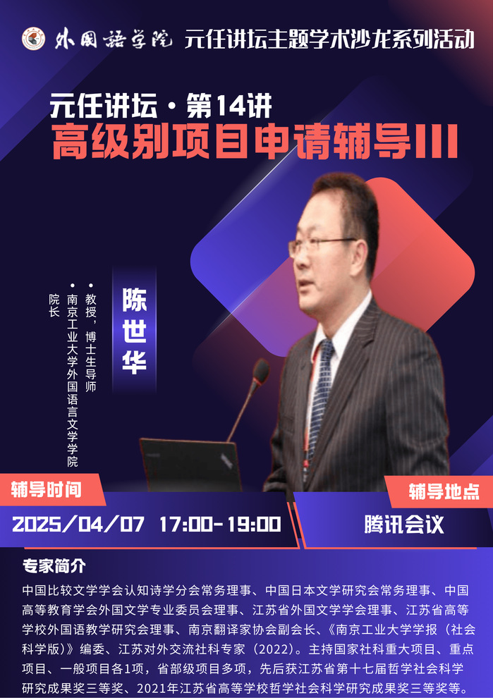4月7日 | 元任讲坛 · 第14讲:高级别项目申请辅导Ⅲ