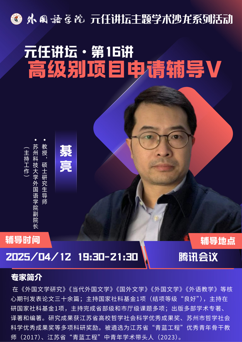 4月12日 | 元任讲坛 · 第16讲:高级别项目申请辅导Ⅴ