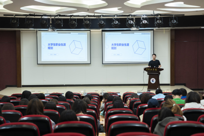 活动现场,余老师以“生涯问道——如何规划大学生涯”为主题,融合详实的统计数据,进行深入浅出的分析阐述。他一方面从大学生毕业去向分析入手,结合当下就业市场的形势和趋势,为同学们详细剖析了不同就业方向的特点和要求。另一方面针对学生普遍关心的是否选择考研问题,从考研利弊分析、考研院校选择、专业确定,到备考计划的制定和心态调整等方面,他都给出了详细且实用的建议。在谈到“为三年后能做什么”时,余老师引导同学们立足当下,思考未来三年的目标和发展路径。他强调,大学时光转瞬即逝,同学们需要提前规划,明确每个阶段的任务和重点,为毕业后走上社会打下坚实基础。