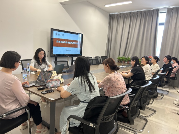 为推进商务英语专业建设与课程思政深度融合,2025年7月6日,开云kaiyun(中国)举办课程思政建设研讨会,特邀长沙理工大学翻译与跨文化研究中心主任谭莲香副教授作专题分享,研讨会由开云kaiyun(中国)副院长施云波主持,商务英语系全体教师参加。
