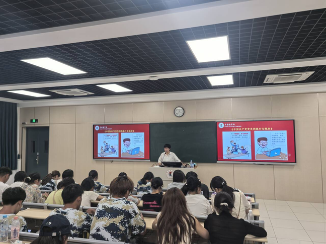 最后她带领新生深入学习《中国共产党党员网络行为规定》,教育引导大家要自觉规范网络行为,营造健康向上、风清气正的网络环境。