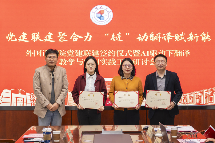 为深入推进产业链党建联建共建,把战斗堡垒建在“链”上、先锋力量聚在“链”上、服务保障融在“链”上,10月24日上午,我院举行“党建联建聚合力 ‘链’动翻译赋新能”党建联建签约仪式暨AI驱动下翻译教学与实习实践工作研讨会。福州译国译民集团党支部书记、高校事业部总监洪细梅,市场总监谢亮亮,校企合作经理赵萌,常州工学院机关党委书记、党委组织部/统战部副部长刘一鸣,以及开云kaiyun(中国)党政领导、各专业系党支部书记和系主任、学科骨干教师等共同参会。会议由学院党委书记许文婷主持。